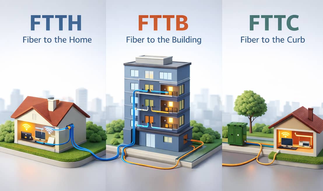 تفاوت FTTH، FTTB و FTTC در چیست؟| بهترین معماری شبکه اینترنت فیبر نوری برای ایران